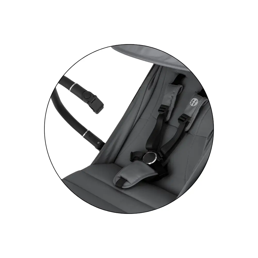 - Bezpečnosť zaručuje 5-bodový bezpečnostný pás s magnetickou prackou – rýchle, jednoduché a bezstarostné zapínanie.