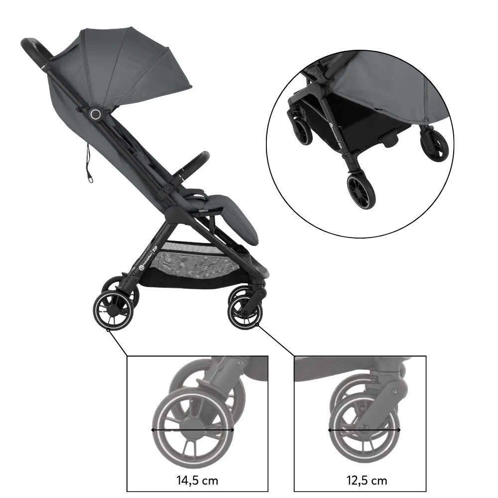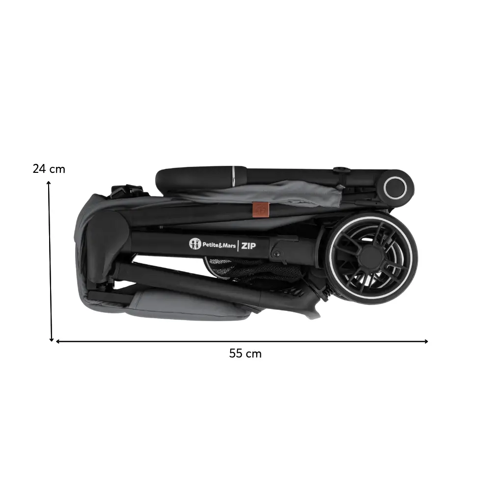 ZIP patrí medzi kočíky s kabínkovým rozmerom po zložení, takže ho môžete bez obáv vziať na palubu lietadla alebo uložiť do kufra aj menšieho auta. S hmotnosťou iba 7 kg ho bez problémov prenesiete v jednej ruke, pričom druhou môžete viesť dieťa.