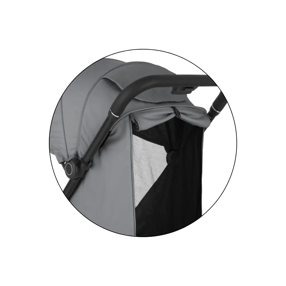 - Rozšíriteľná strieška s integrovaným šiltom s ochranou UPF50+ chráni pred ostrým slnkom, zatiaľ čo rodičovské okienko s tichým magnetickým uzáverom umožňuje nenápadný dohľad bez rušenia dieťaťa.