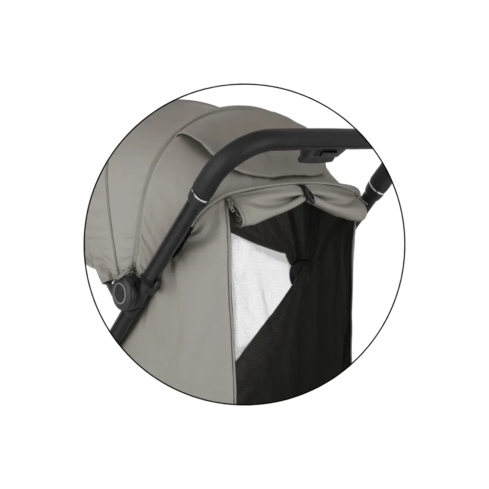 - Rozšíriteľná strieška s integrovaným šiltom s ochranou UPF50+ chráni pred ostrým slnkom, zatiaľ čo rodičovské okienko s tichým magnetickým uzáverom umožňuje nenápadný dohľad bez rušenia dieťaťa.