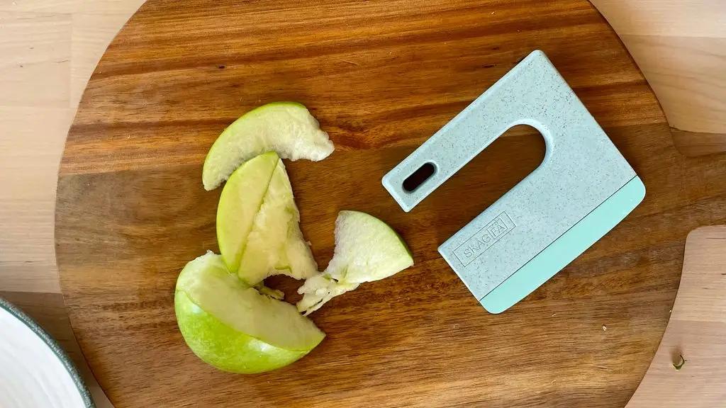 KLYV je navrhnutý špeciálne pre malé rúčky, ktoré sa chcú zapojiť do varenia a majú veľkú chuť pomáhať. Vďaka jedinečnému klinovému tvaru a čepeli z nehrdzavejúcej ocele bez ostrých hrán môžu deti bezpečne, samostatne (ale vždy pod dohľadom dospelého!) a s radosťou krájať ovocie, zeleninu a iné dobroty bez rizika poranenia.