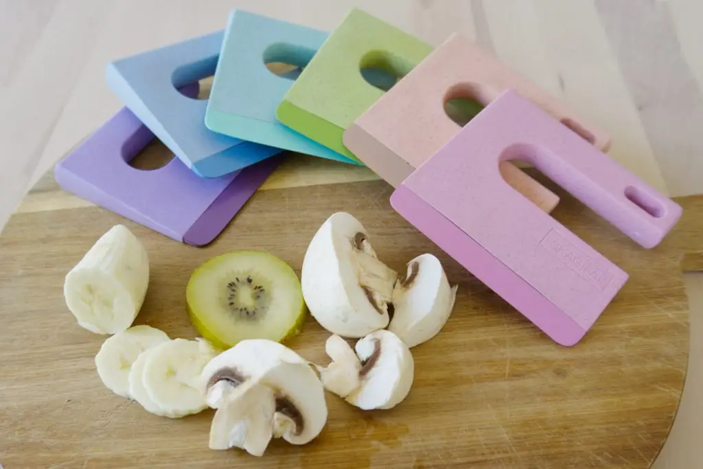 KLYV je navrhnutý špeciálne pre malé rúčky, ktoré sa chcú zapojiť do varenia a majú veľkú chuť pomáhať. Vďaka jedinečnému klinovému tvaru a čepeli z nehrdzavejúcej ocele bez ostrých hrán môžu deti bezpečne, samostatne (ale vždy pod dohľadom dospelého!) a s radosťou krájať ovocie, zeleninu a iné dobroty bez rizika poranenia.