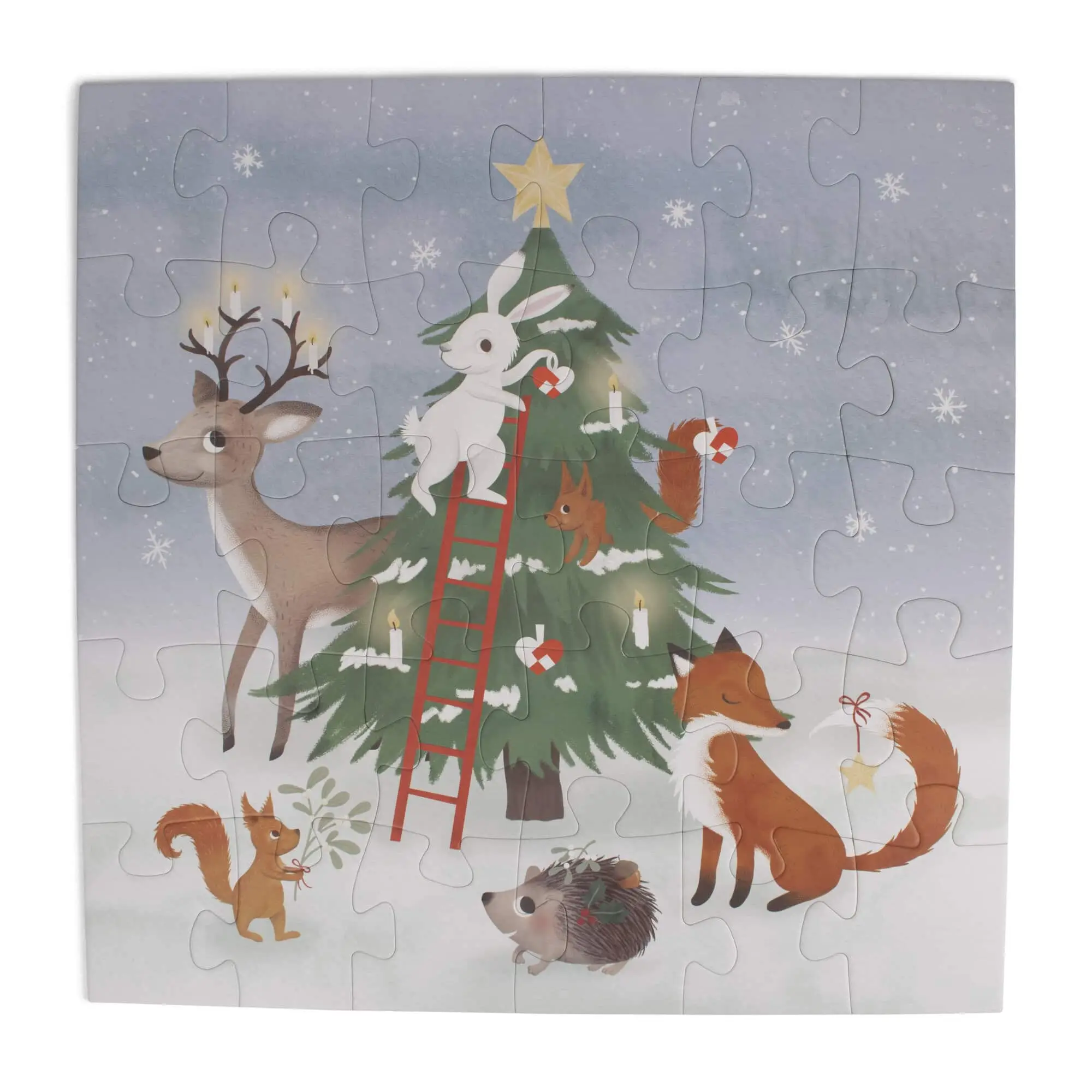 Toto sviatočné puzzle sa skladá z 30 veľkých dielikov, ktoré sa deťom ľahko držia a skladajú. Navrhnuté na posilnenie jemnej motoriky a podporu sústredenia, spája zábavu s učením. Puzzle je uložené v krásne navrhnutej krabičke, ktorá slúži aj ako dekoratívny doplnok do detskej izby, keď sa práve nepoužíva.