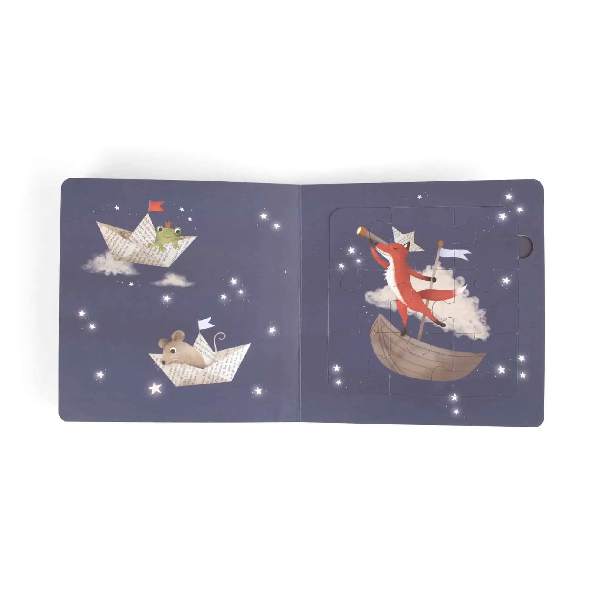 Pútavé ilustrácie oživujú tému Dreamy Adventurers od FILIBABBA. Magické zvieratká lietajúce nočnou oblohou pri hľadaní najjasnejších hviezd vnášajú do každej scény rozprávkovú atmosféru, ktorá inšpiruje deti aj dospelých k rozprávaniu príbehov a tvorivej hre.