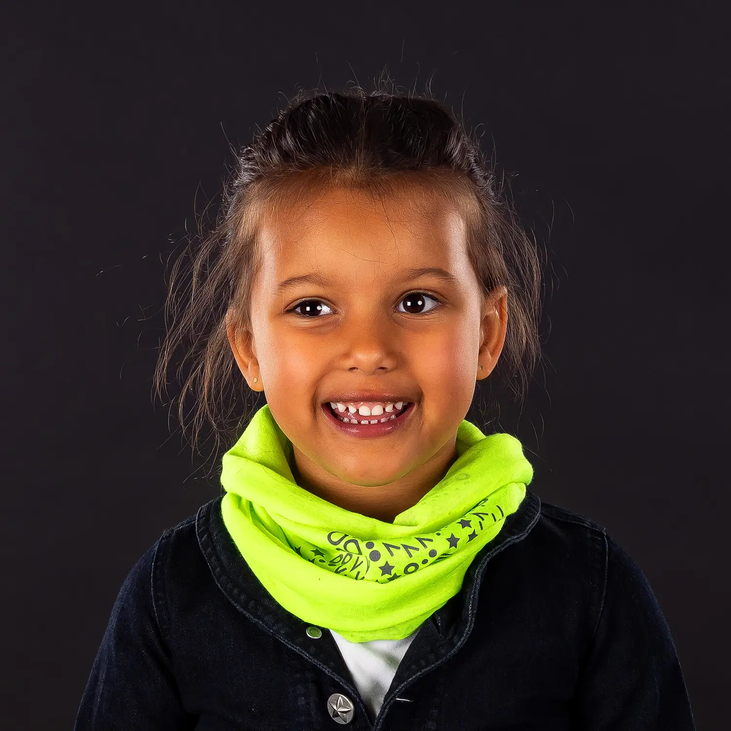 Multifunkčná šatka nielen zviditeľní Vaše dieťa vďaka jasnej signálnej farbe, ale reflexná potlač ešte viac zvyšuje viditeľnosť. Fluorescenčný dizajn odráža dopadajúce svetlo, čo výrazne zvyšuje viditeľnosť v tme.