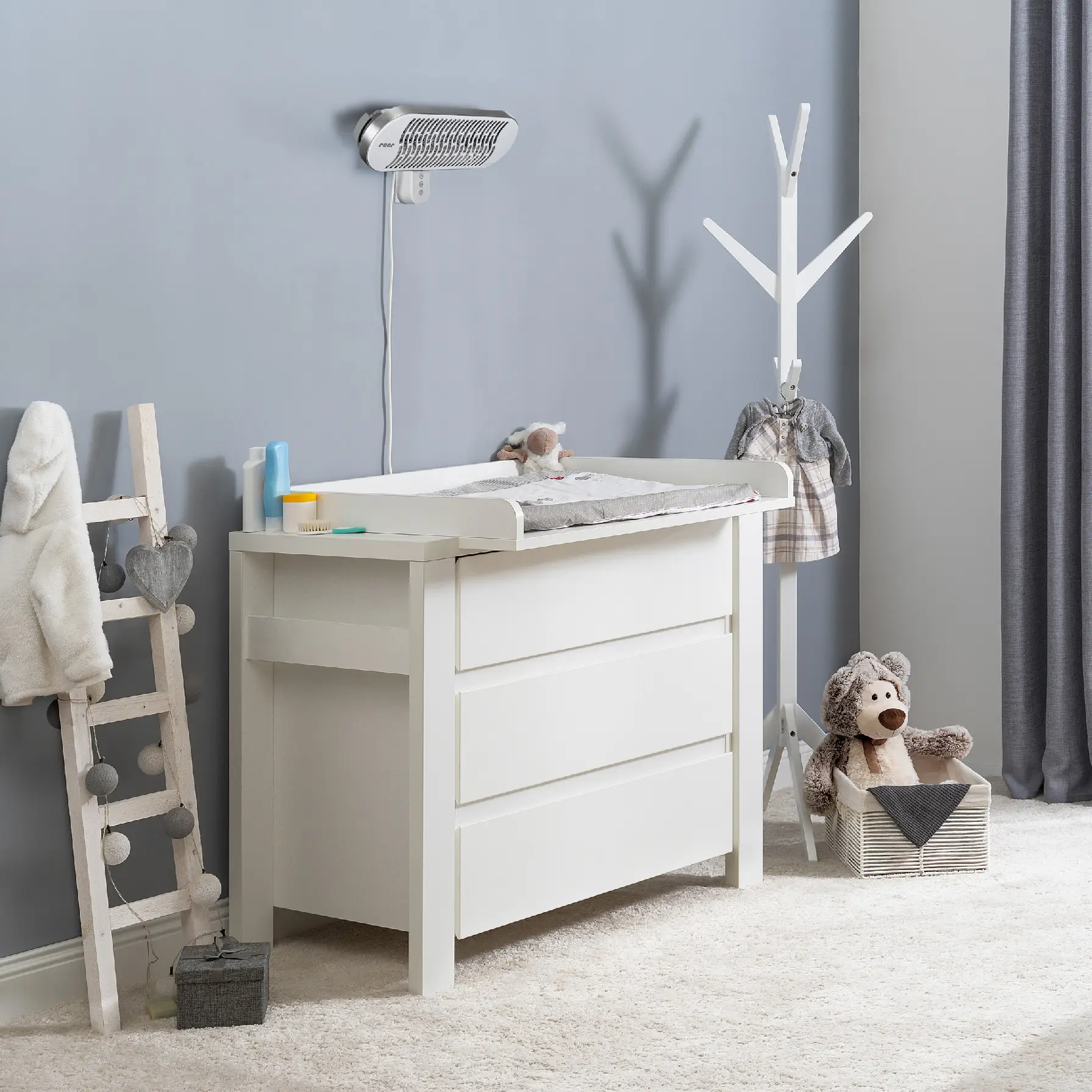 Bábätká ešte nedokážu samostatne regulovať svoju telesnú teplotu. Preto veľmi rýchlo prechladnú, najmä po kúpaní alebo prebaľovaní. Aj malé teplotné rozdiely môžu spôsobiť, že dieťa zamrzne alebo prechladne. O to dôležitejšie je zabezpečiť stabilnú a príjemnú teplotu. Ohrievač HeatCare+ Flex poskytuje vašemu dieťaťu okamžite príjemné teplo. Vďaka tomu je spoľahlivo chránené pred chladom a môže si v pohodlí a s pocitom bezpečia užívať čas prebaľovania.