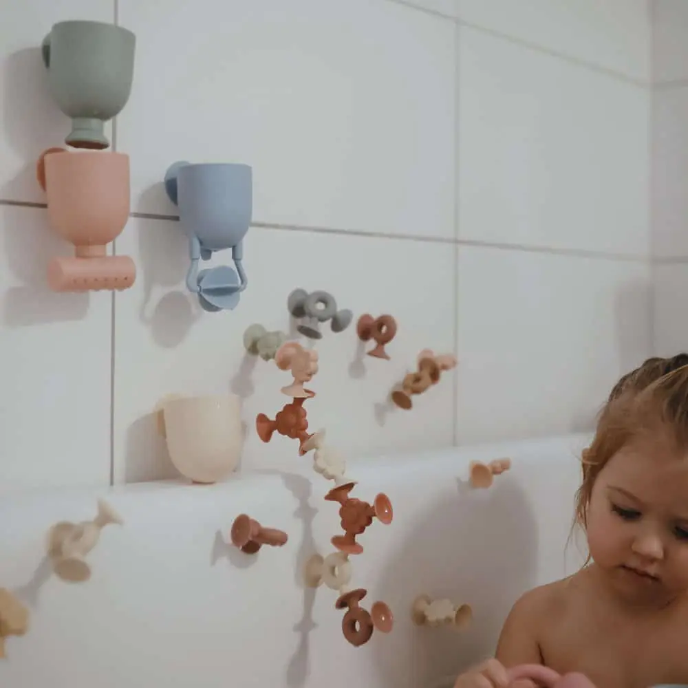 Hračka je vyrobená z netoxického plastu a potravinárskeho silikónu, vďaka čomu je bezpečná, odolná a príjemná na dotyk. Jemné, tlmené farby zároveň vytvárajú upokojujúcu atmosféru počas každého kúpeľa.