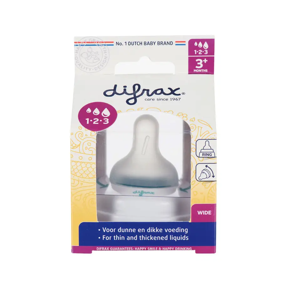 Krúžok 1-2-3 Variflow k širokej fľaštičke Difrax spolu so širokou savičkou 1-2-3 Variflow zmení bežnú širokú fľaštičku na fľašku s nastaviteľnou rýchlosťou prietoku. Umožňuje tak dieťaťu podávať stravu od mlieka až po hustú kašu prostredníctvom jednej savičky a skvele pasuje na 200 ml a 310 ml široké S-fľašky Difrax.