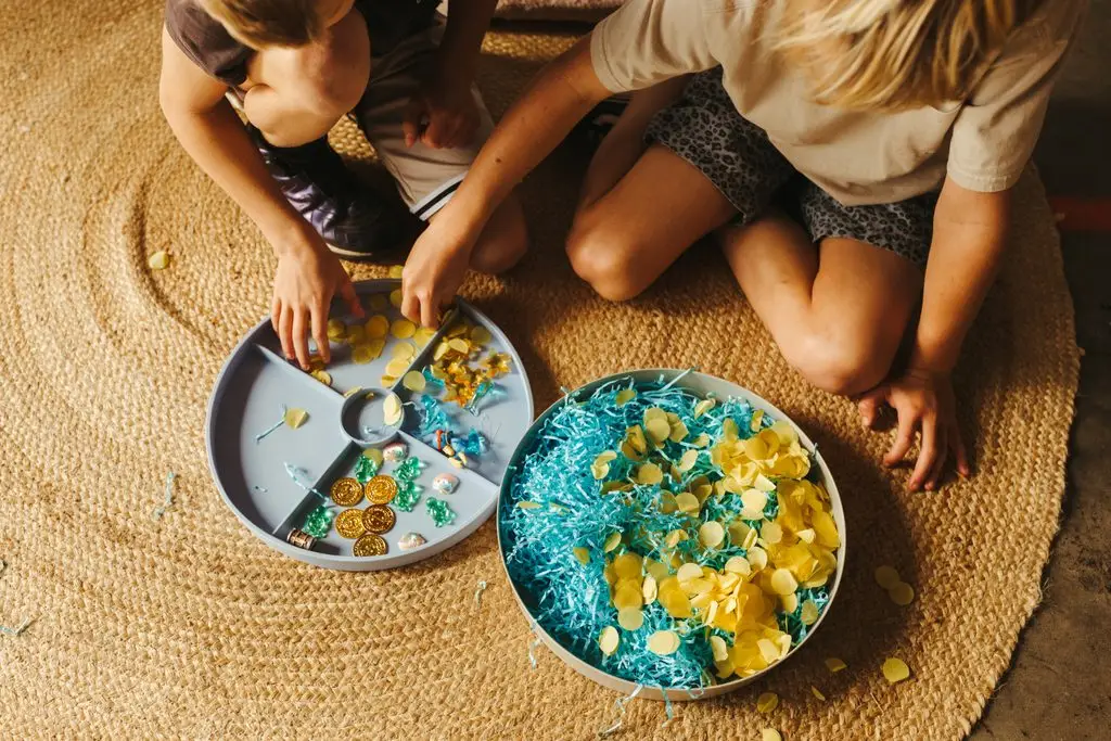 Deti si pri hre vytvárajú vlastné scenáre, rozvíjajú predstavivosť a budujú vnútornú istotu prostredníctvom samostatného objavovania. Opakujúce sa pohyby presýpania, triedenia alebo ukrývania pokladu majú prirodzene upokojujúci efekt. Dieťa si samo určuje tempo aj priebeh hry – bez tlaku, bez správneho či nesprávneho riešenia.