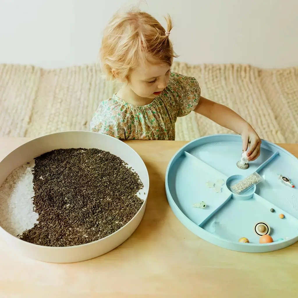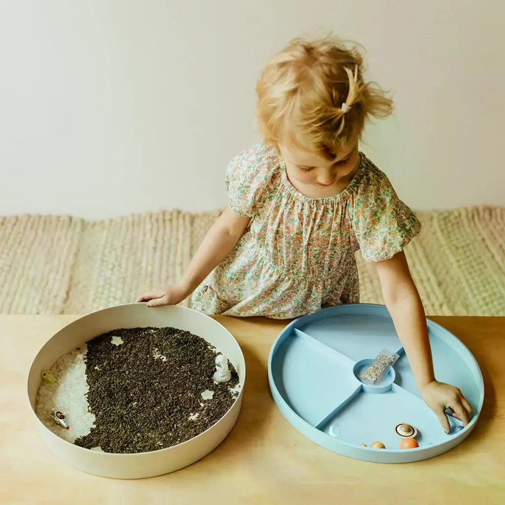 Senzorický set sa môže stať súčasťou pokojového kútika, Montessori aktivít alebo kreatívneho popoludnia doma. V kombinácii so senzorickým tácňom Play Tray získava hra jasný priestor a poriadok – a deti možnosť naplno sa ponoriť do svojho sveta.