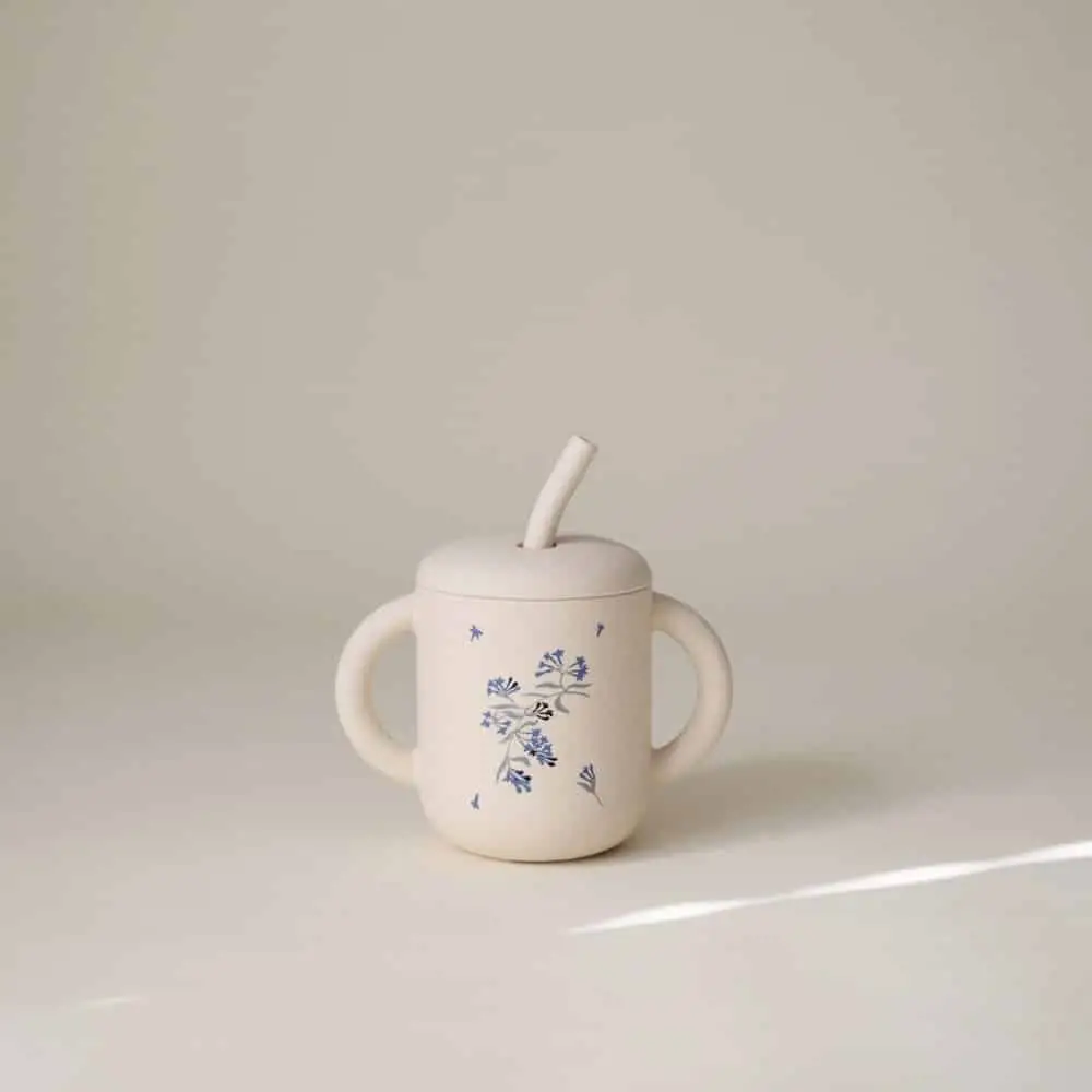 MUSHIE SILIKÓNOVÝ POHÁRIK SO SLAMKOU - LILAC FLOWERS