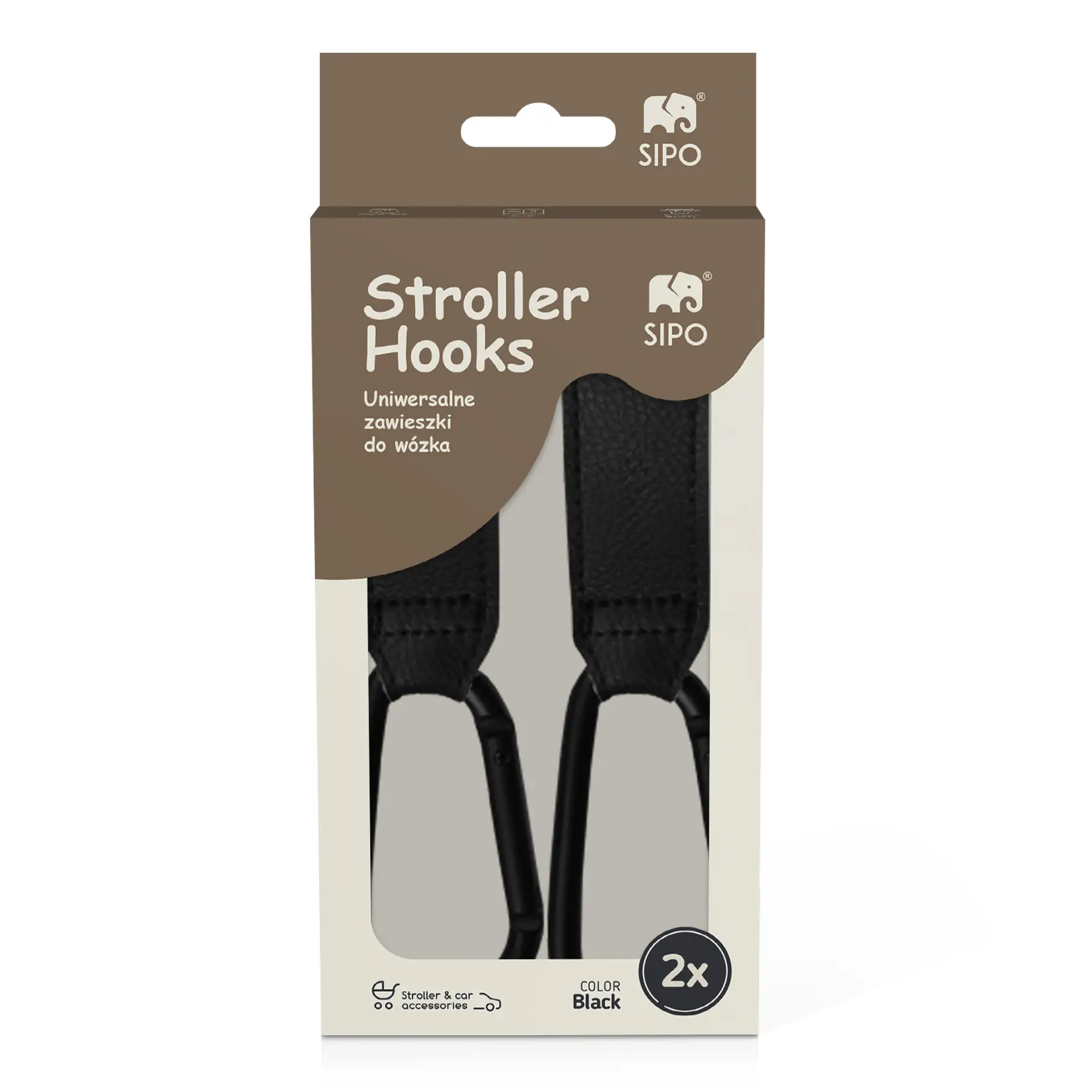 Produkt Sipo Háčiky (skoby) na kočík, 2ks, čierna