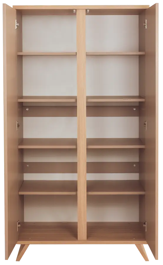 Dvojdielna šatníková skriňa do detskej izby Sienna Cappuccino zaistí dostatok úložného miesta. Praktická vnútorná výbava tvorená dvoma šatníkovými tyčami a poličkami prispieva k prehľadnému a ľahkému ukladaniu vecí vášho dieťaťa.