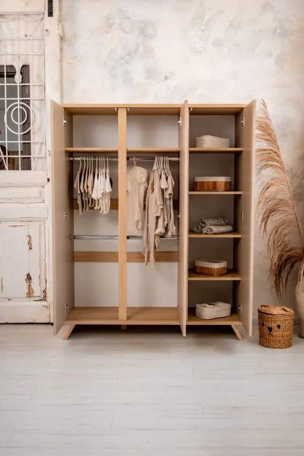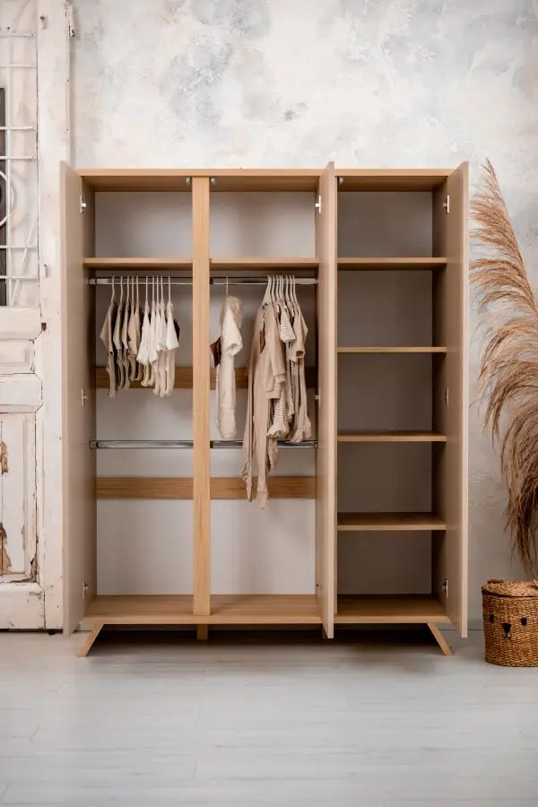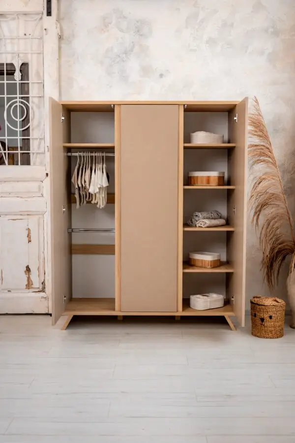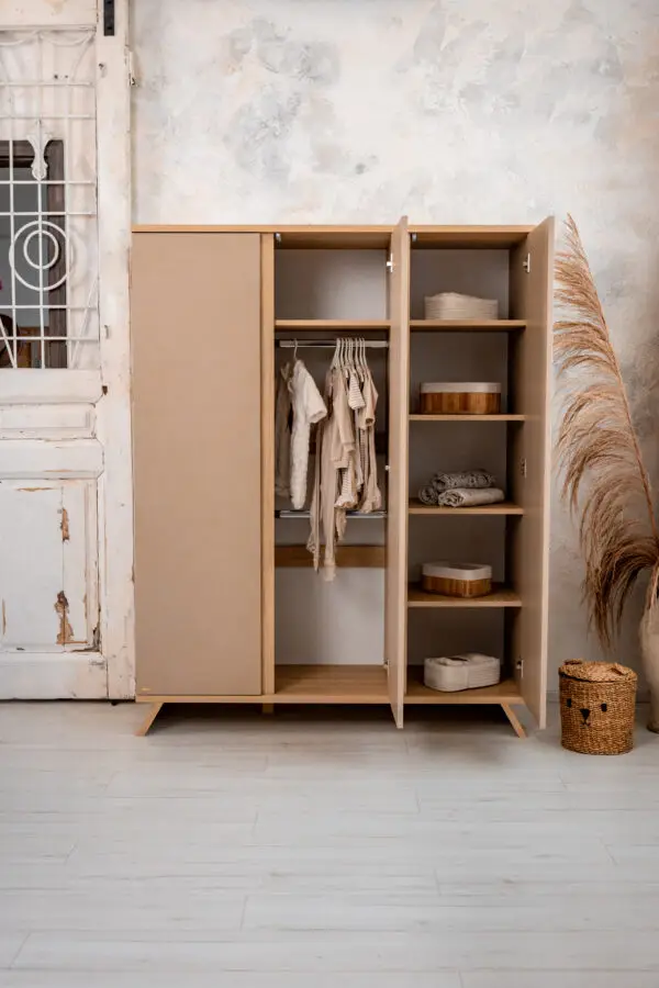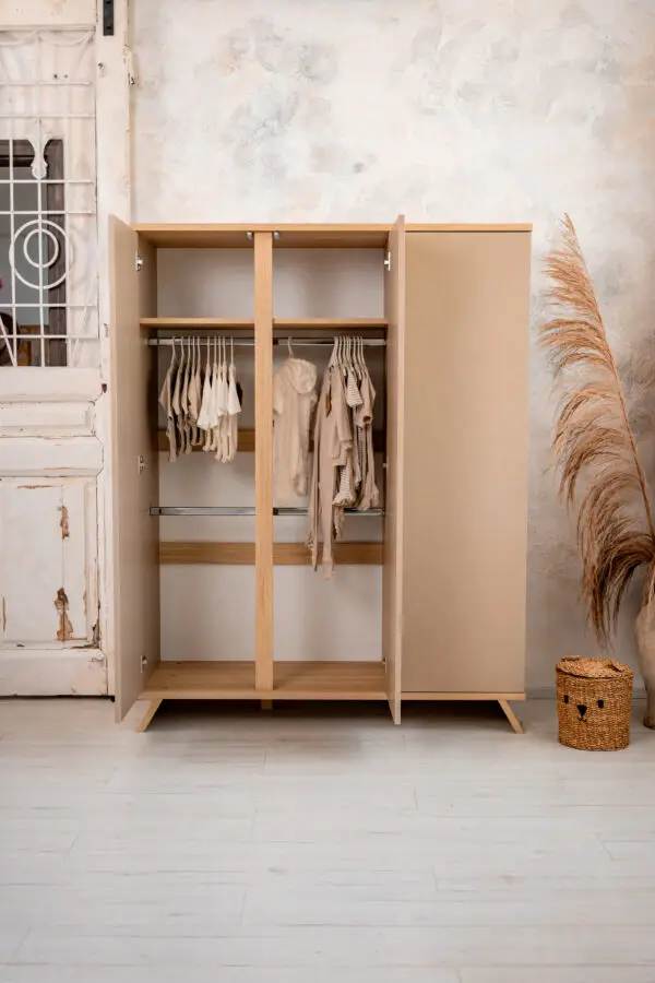 Je pravda, že väčšia šatníková skriňa zaberá viac miesta, ale ponúka aj veľa úložných možností. Dvere využívajú modernú technológiu otvárania push-open: namiesto úchytky sa otvárajú jediným stlačením vďaka zabudovanému vysúvaciemu mechanizmu, ktorý poskytuje čistý, štýlový vzhľad a pohodlné používanie. Skriňu je možné navyše používať od novorodeneckého až po dospelý vek.