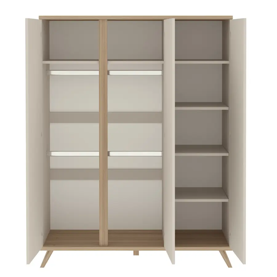 Je pravda, že väčšia šatníková skriňa zaberá viac miesta, ale ponúka aj veľa úložných možností. Dvere využívajú modernú technológiu otvárania push-open: namiesto úchytky sa otvárajú jediným stlačením vďaka zabudovanému vysúvaciemu mechanizmu, ktorý poskytuje čistý, štýlový vzhľad a pohodlné používanie. Skriňu je možné navyše používať od novorodeneckého až po dospelý vek.