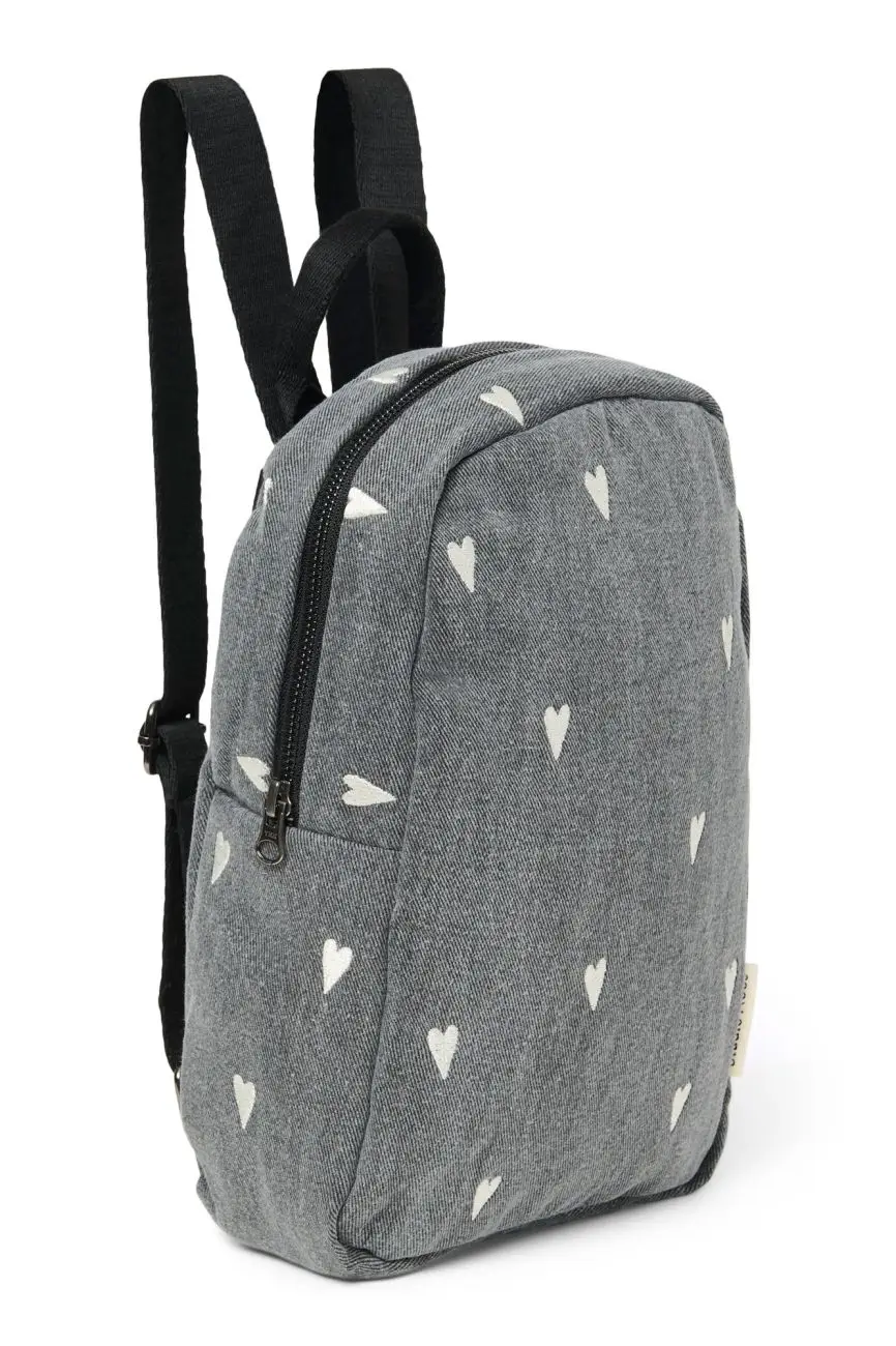 STUDIO NOOS - Denim Mini BACKPACK - batôžtek Grey Hearts