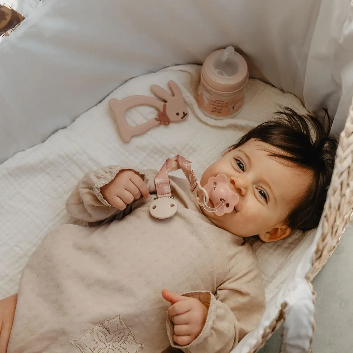 Cumlík je vybavený fyziologickou cumlíkovou časťou SX Pro zo silikónu, ktorá je plochá a symetrická. Vďaka tomu prirodzene rešpektuje vývoj ústnej dutiny dieťaťa a nenarúša jeho prirodzené sacie reflexy.