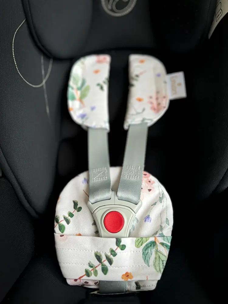 Použitie vhodné ako v kočíku, tak v autosedačke. Ramenné polstrovanie majú suché zipsy pre rýchle nasadenie, väčšie polstrovanie sa na sponu autosedačky navlieka.
