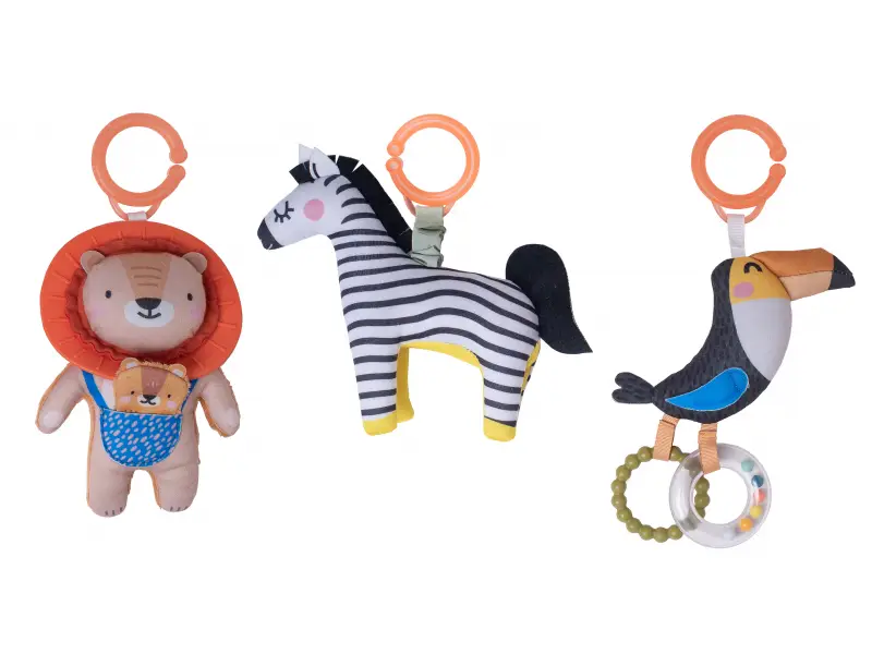Vďaka plastovému krúžku hračku ľahko pripevníte napr. na autosedačku či kočík.
