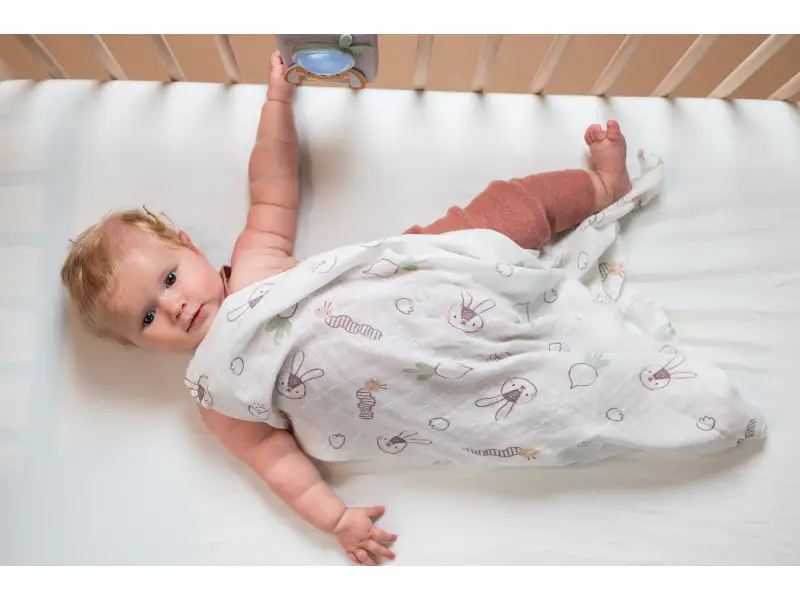 Súčasťou balenia je jemná zavinovacia plienka 70x70 cm zo zmesi 70% bambusu a 30% bavlny, ktorá je šetrná k citlivej pokožke vášho bábätka.