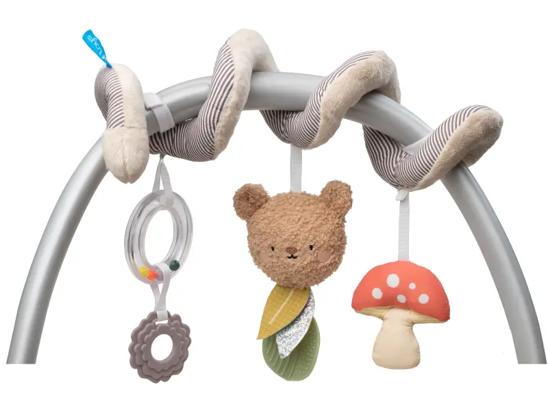 Spirála Taf Toys Bear Hugs je multi-senzorická hračka, která zabaví vaše miminko od narození doma i na cestách. Díky spirálovému tvaru ji snadno upevníte na kočárek, postýlku nebo autosedačku. Pozornost dítěte upoutá kombinace měkkých plyšových hraček s kousátky a chrastítky. Zavěšené hračky z různých materiálů podporují klidné zkoumání rukama i očima a pomáhají rozvíjet první dovednosti během každé procházky i odpočinku doma.