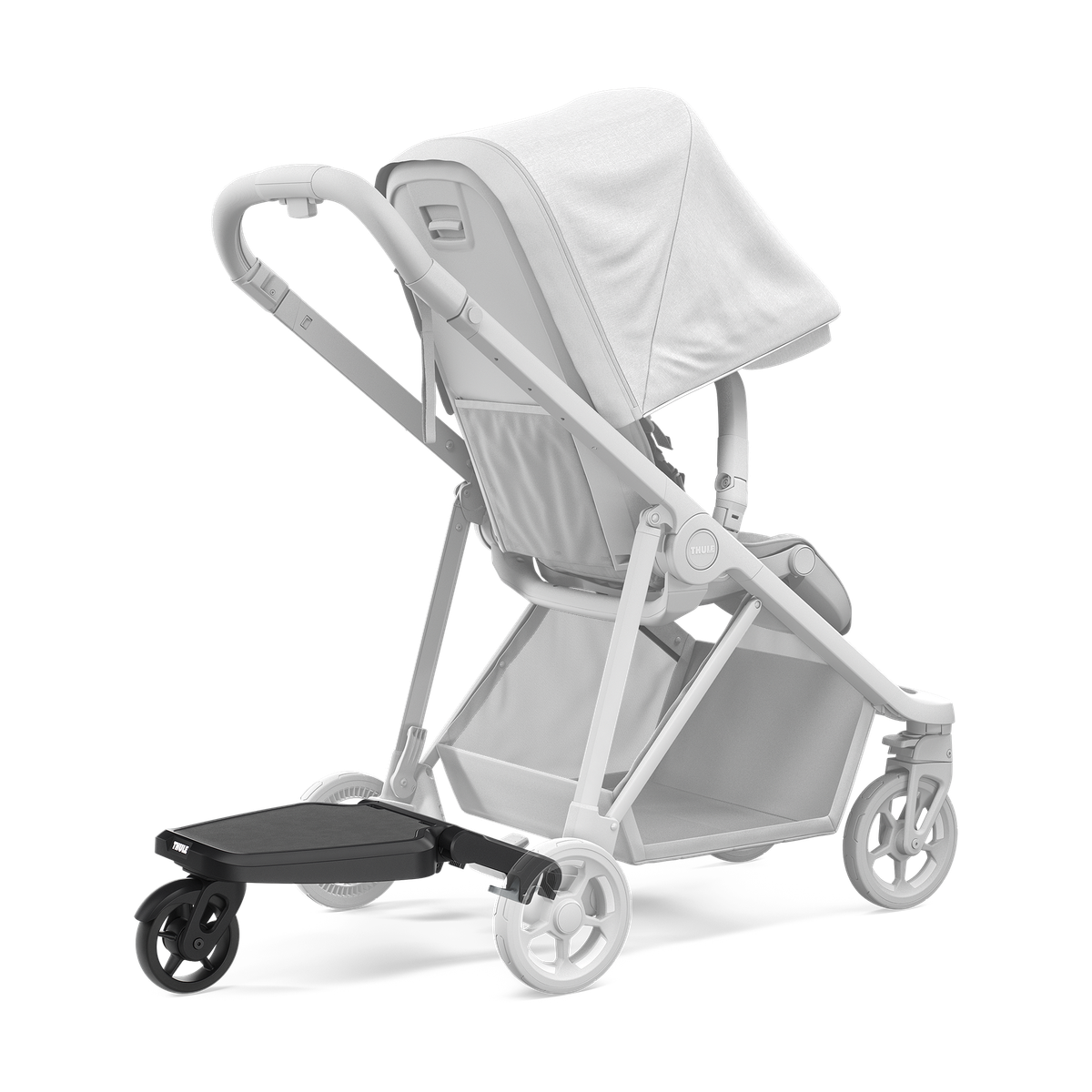 Rider Board Thule Rider Board je navrhnutý tak, aby bol namontovaný na zadnú nápravu vášho kočíka Thule a umožnil tak staršiemu dieťaťu jazdiť na zadnej strane vášho kočíka.Pripevnenie Thule Rider Board na váš kočík Thule sa vykonáva najprv zatiahnutím parkovacej brzdy. Rider Board je potom pripevnený k zadnej náprave, po správnej inštalácii by ste mali počuť cvaknutie. Pred prvou inštaláciou odporúčame starostlivo preštudovať pokyny.