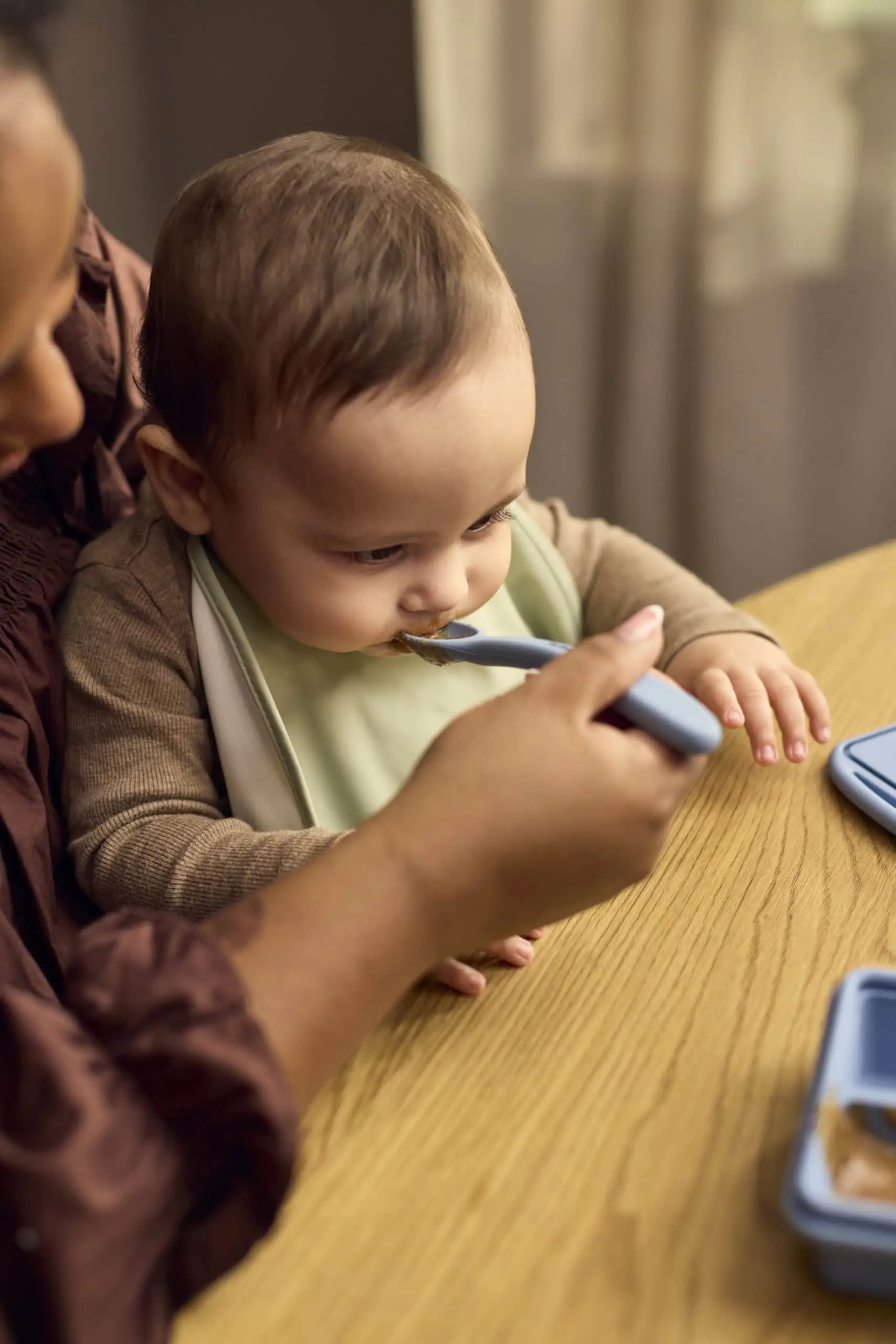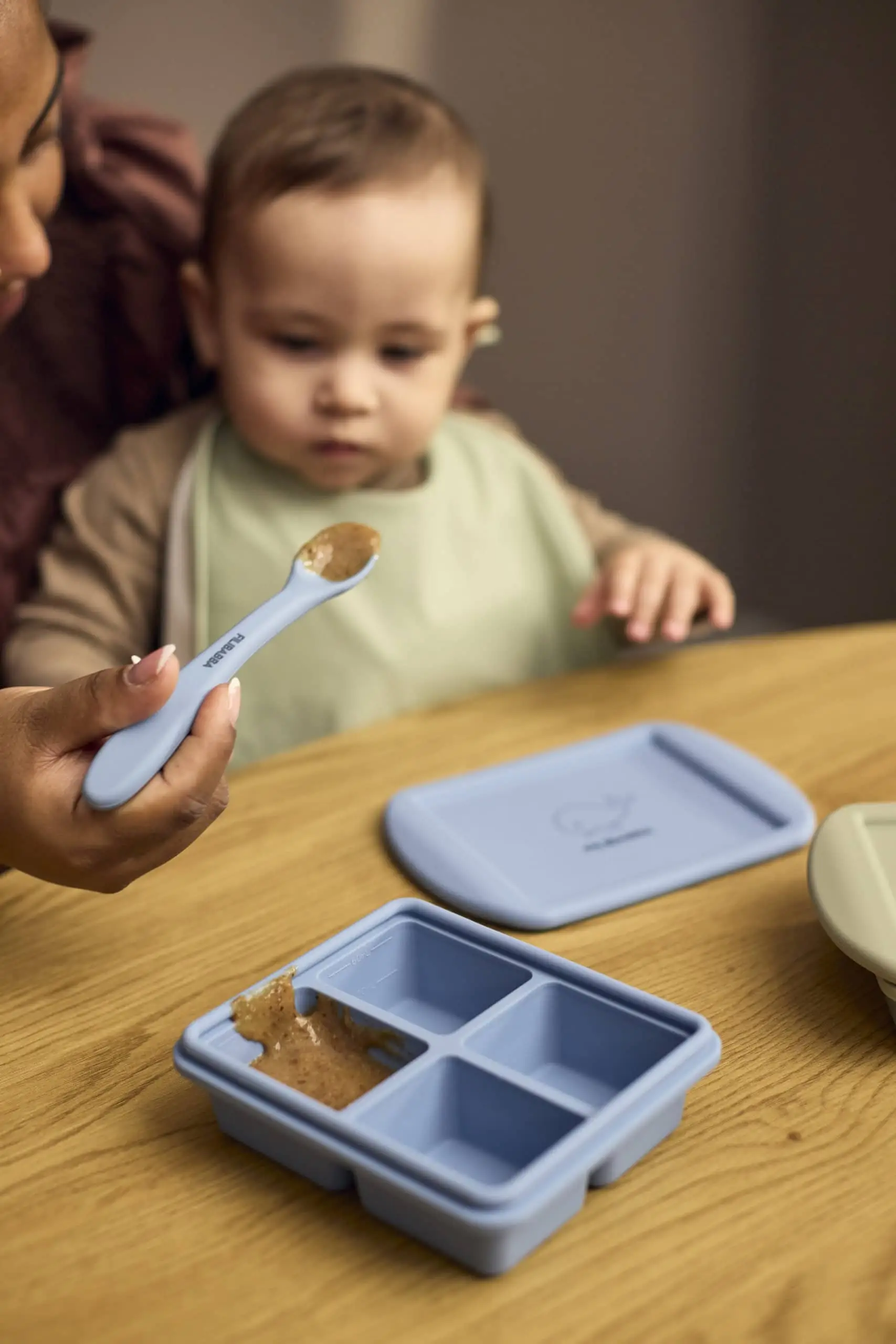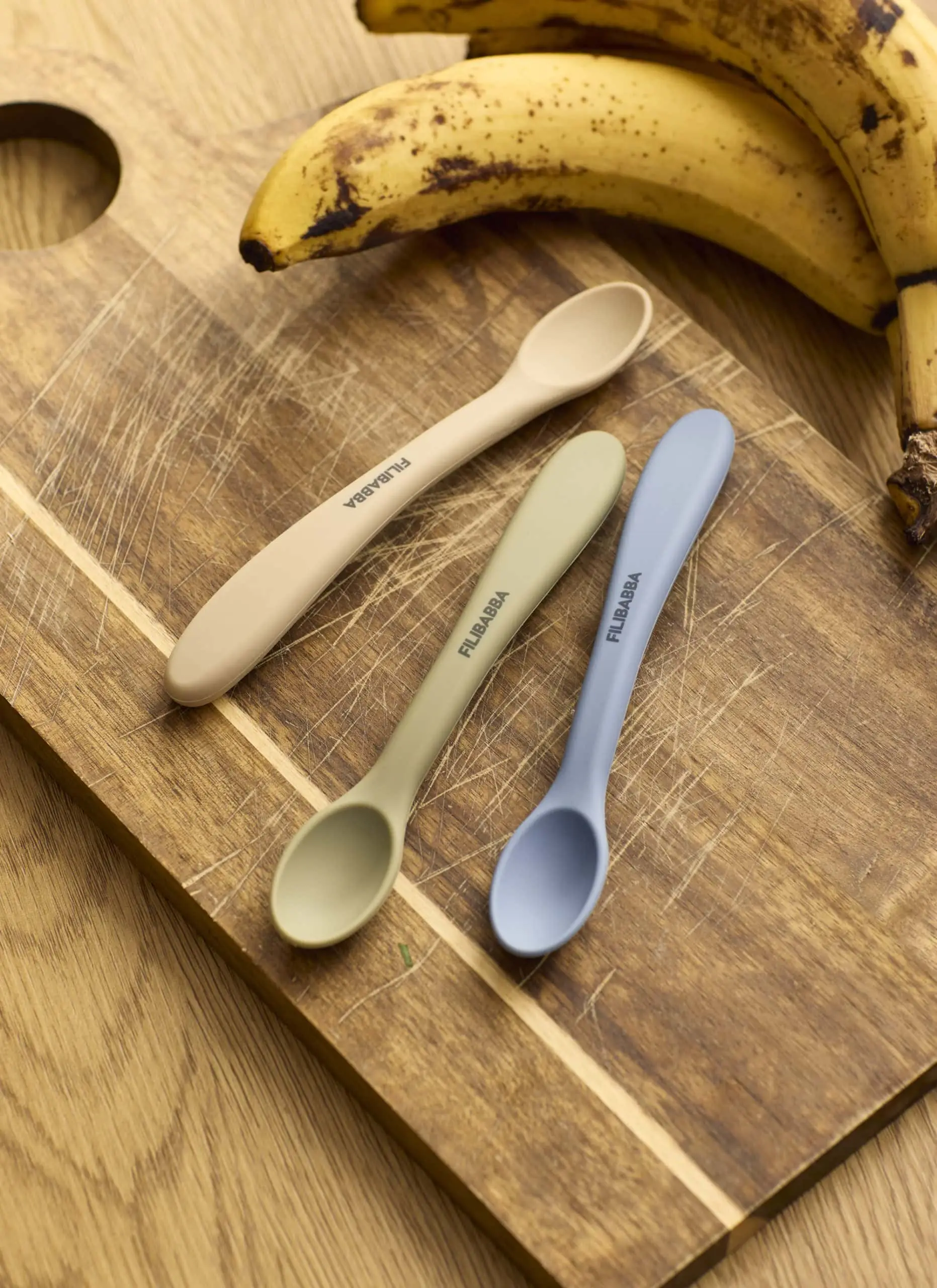 Navrhnuté s ohľadom na malé ústa, lyžičky majú mäkký silikónový povrch, ktorý chráni citlivé zúbky a upokojuje ďasná. Úzka hlavička lyžičky zaisťuje pohodlné naberanie, zatiaľ čo dlhá rukoväť je ideálna na kŕmenie a ľahké dosiahnutie na dno pohárov s detskou výživou. Vyrobené z potravinárskeho silikónu s certifikátom LFGB a vnútorným plastovým jadrom pre väčšiu stabilitu. Sú vhodné do umývačky riadu a navrhnuté na každodenné používanie.