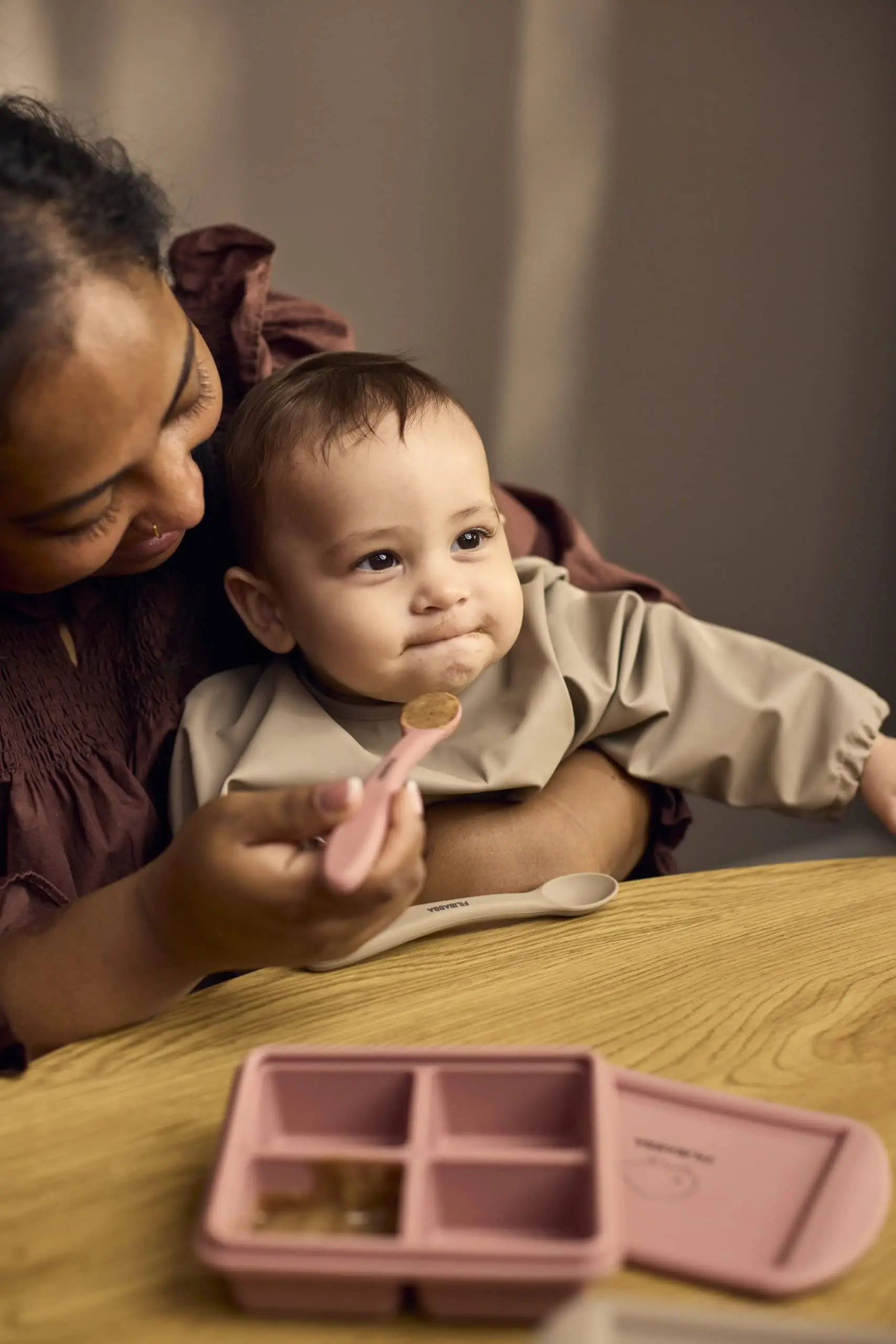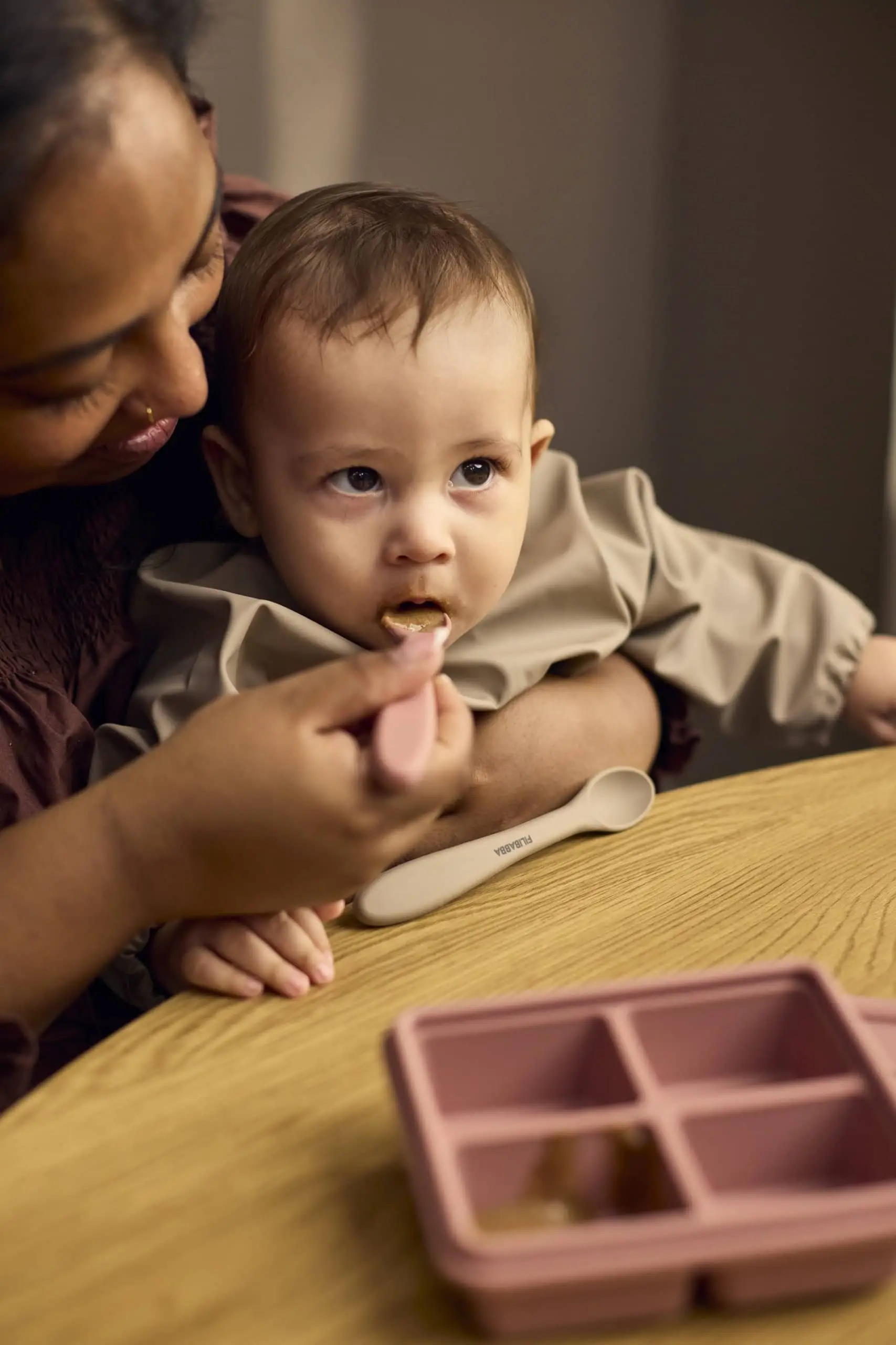 Navrhnuté s ohľadom na malé ústa, lyžičky majú mäkký silikónový povrch, ktorý chráni citlivé zúbky a upokojuje ďasná. Úzka hlavička lyžičky zaručuje pohodlné používanie, zatiaľ čo dlhá rukoväť je ideálna na kŕmenie a ľahké dosiahnutie do pohárov s detskou výživou. Sú vyrobené z potravinárskeho silikónu v kvalite LFGB s vnútorným plastovým jadrom pre väčšiu stabilitu, možno ich umývať v umývačke riadu a sú vhodné na každodenné používanie.