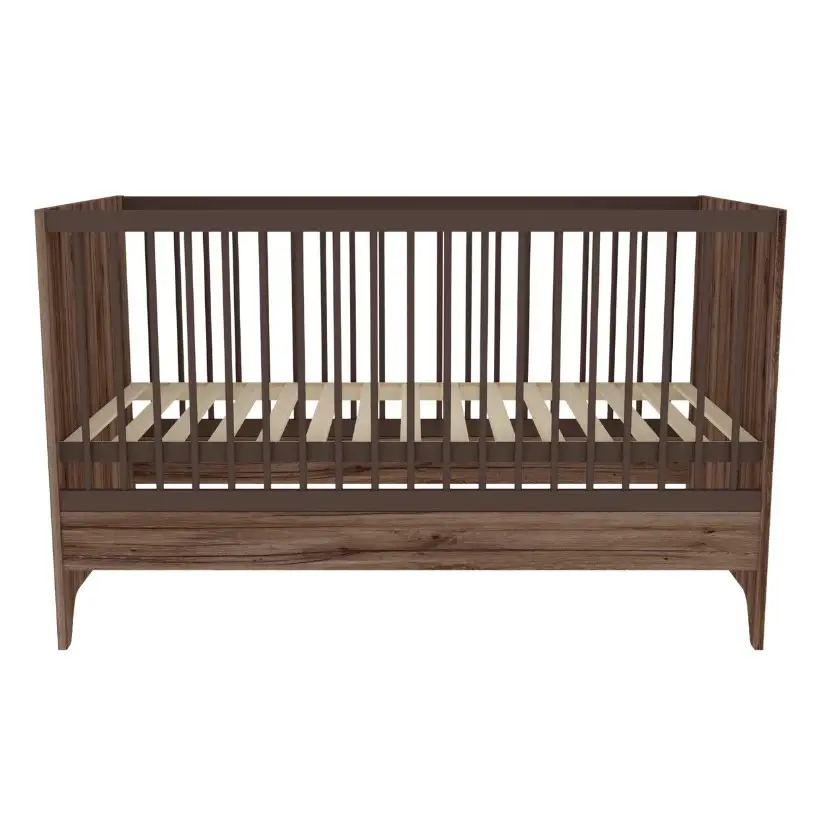 Detská postieľka Nest Walnut 140x70cm je variabilnou časťou modernej detskej izby, ktorá poslúži dieťaťu po dlhú dobu. Povrchová úprava v odtieni tmavého orecha je zdobená špeciálnym čiernym žilkovaním, ktoré dodáva nábytku prírodný vzhľad a charakter.