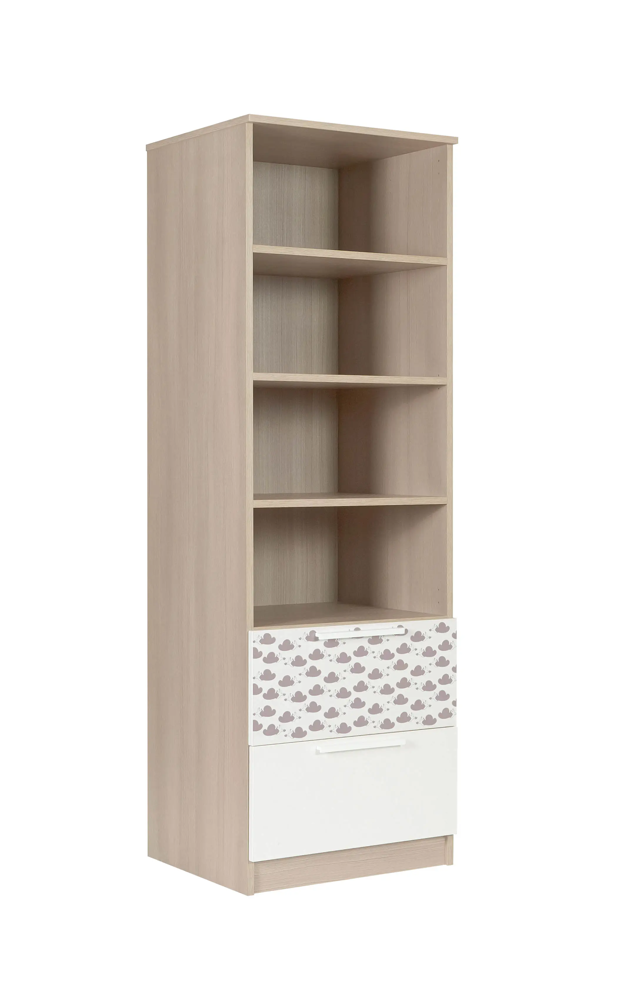 Policový regál s 2 zásuvkami Faktum Poppi (biela s motívom obláčika)