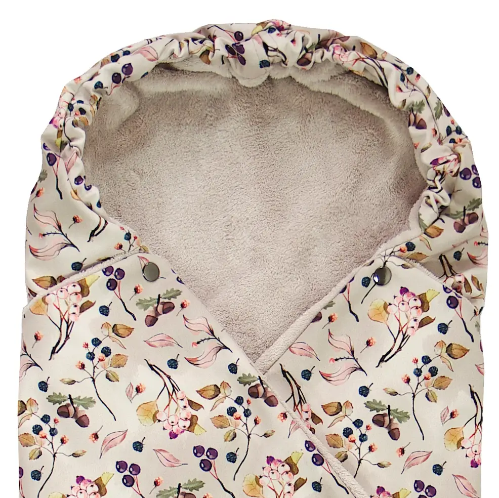 Praktické otvory pre ruky dieťaťa, vhodné pre deti, ktoré rady pohybujú ručičkami a neznášajú pocit stiahnutia v zavinovačke. Stiahnutím šnúrok v hornej časti zavinovačky vznikne kapucňa, ktorá chráni dieťa pred chladom.