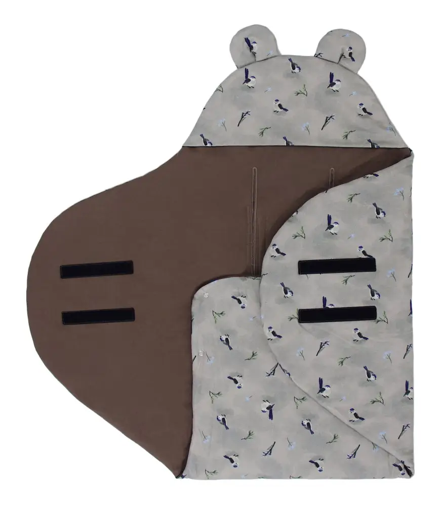 Zavinovačka UNI je vybavená suchými zipsami pre rýchle a pohodlné zabalenie. Na jej zadnej časti nájdete univerzálne, dostatočne veľké otvory na prechod bezpečnostných pásov kočíkov a autosedačiek, a to aj tých 5-bodových. Tieto otvory sú vybavené suchými zipsami, takže stačí jednoducho pretiahnuť pásy cez pripravené otvory a potom ich zapnúť suchými zipsami – jednoduché a funkčné riešenie!