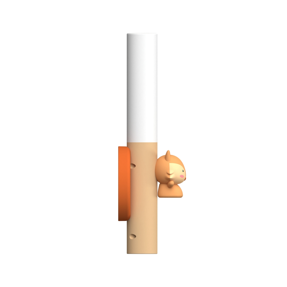 Jedinečný dizajn, povrch zo silikónu príjemného na dotyk a tvar prispôsobený detským rúčkam robia z tejto lampy ideálneho parťáka. Pomocou magnetického držiaka ju ľahko upevníte na stenu pri posteli alebo čítacom kútiku.
