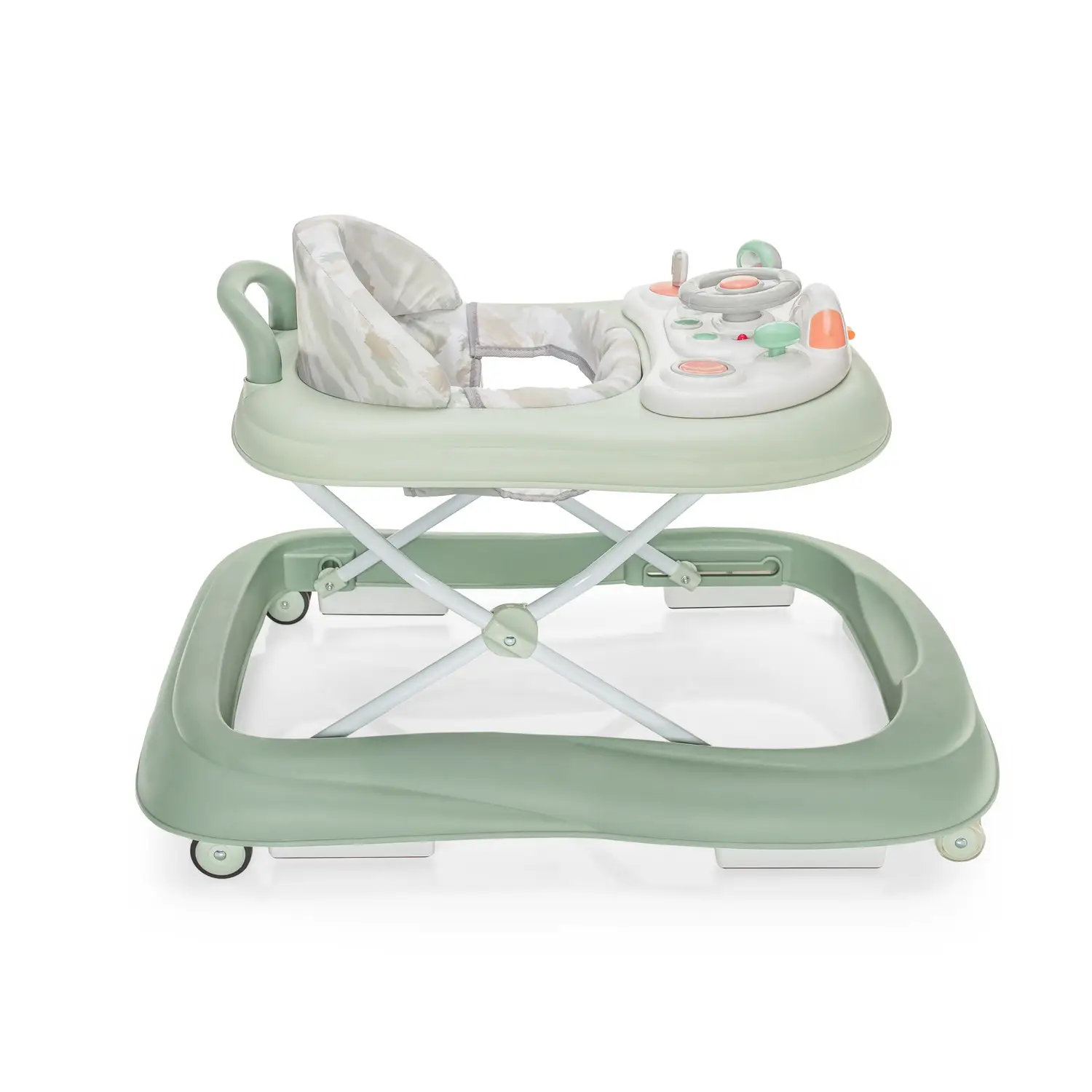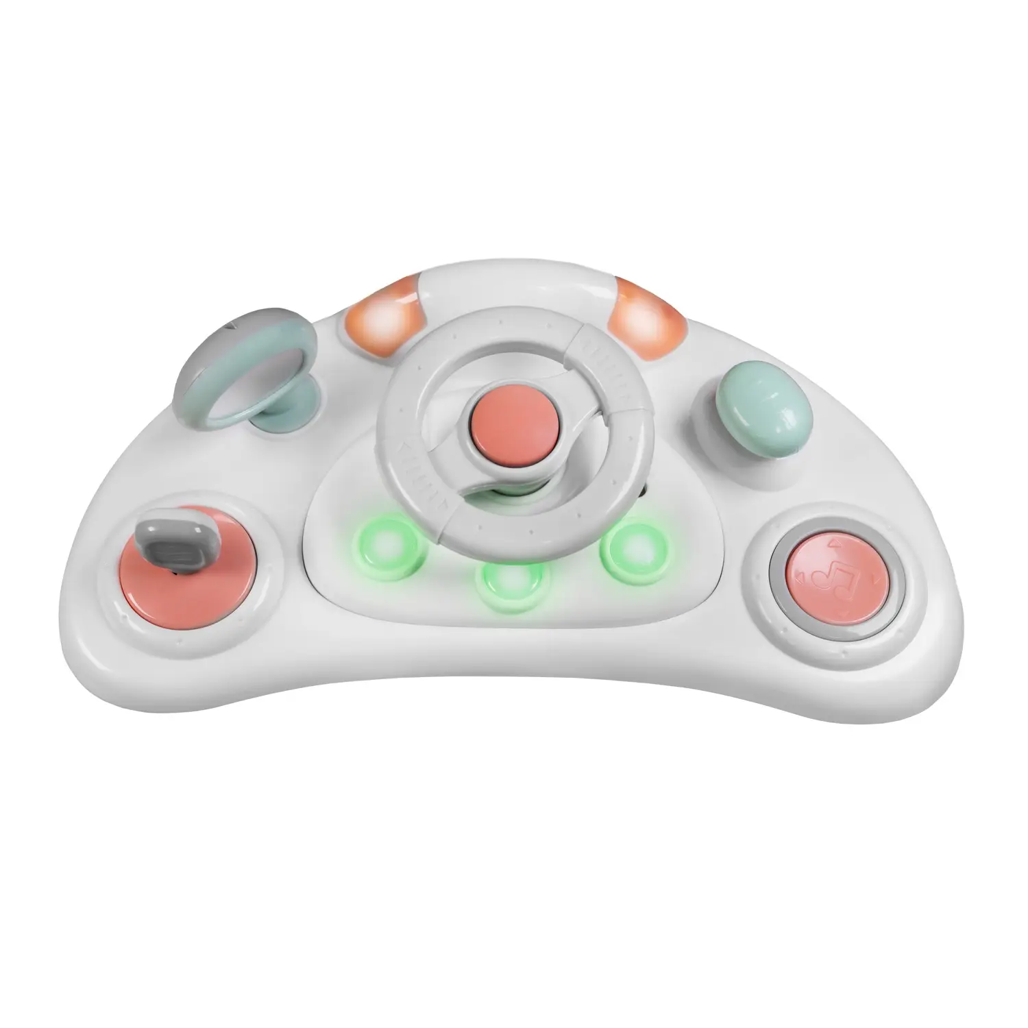 Súčasťou chodítka je odnímateľný interaktívny pultík plný podnetov. Ponúka svetelné efekty veselé melódie aj zvuky auta a nechýba ani otočný volant a ďalšie hravé prvky. Dieťa tak nielen trénuje chôdzu ale zároveň rozvíja svoje zmysly koordináciu aj jemnú motoriku.