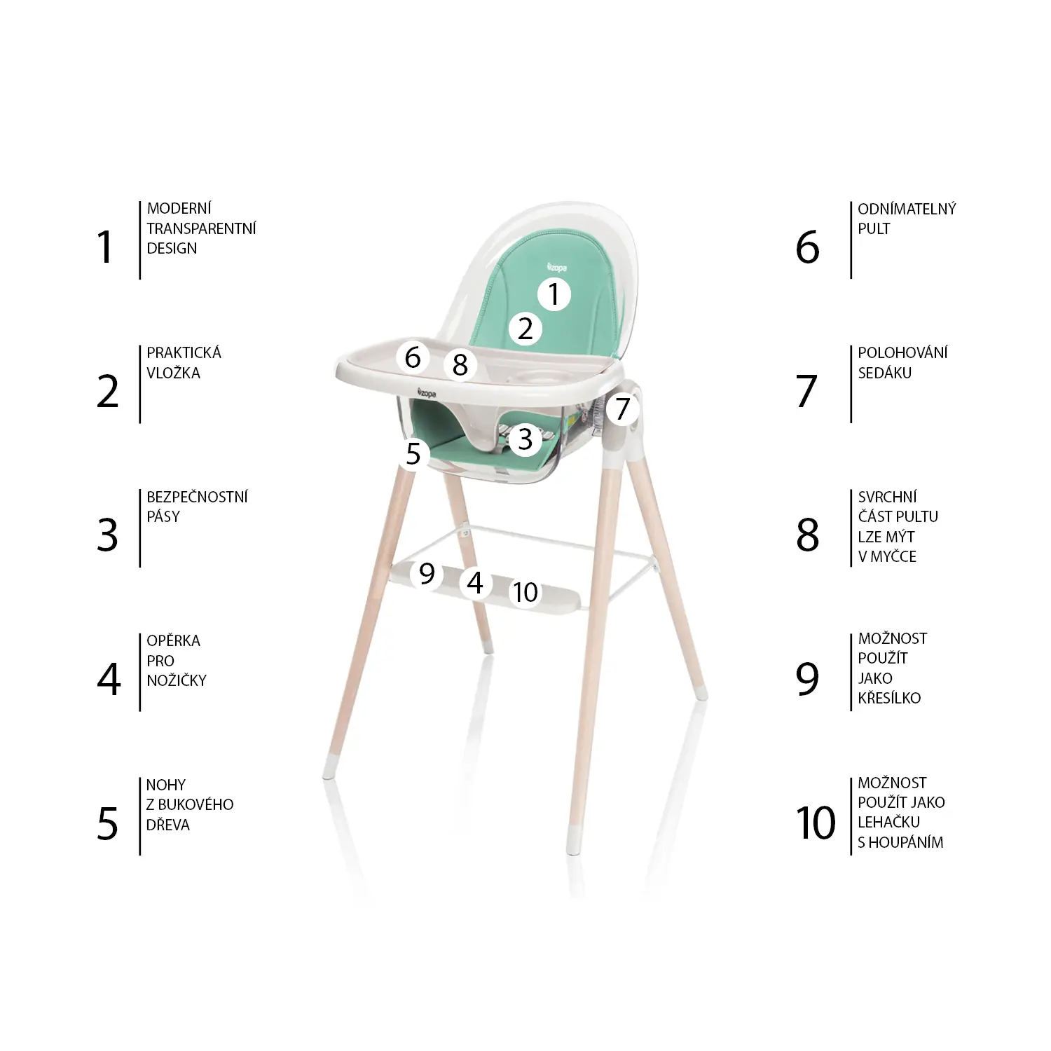 Produkt ZOPA Jedálenská stolička Elite, Mint