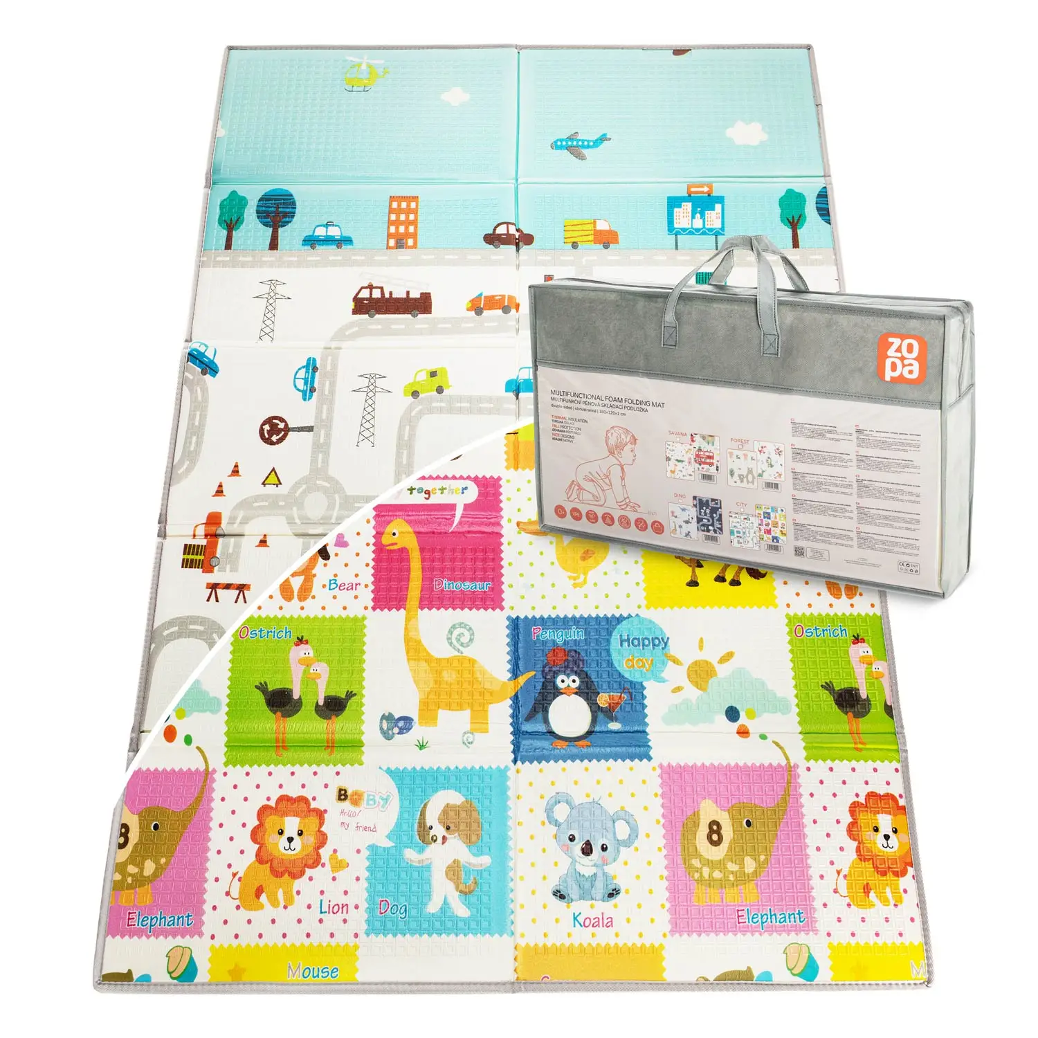 Vďaka obojstrannému prevedeniu môžete jednoducho meniť vzhľad podložky podľa nálady alebo interiéru. Veselé motívy podporujú fantáziu a rozvíjajú kreativitu dieťaťa.