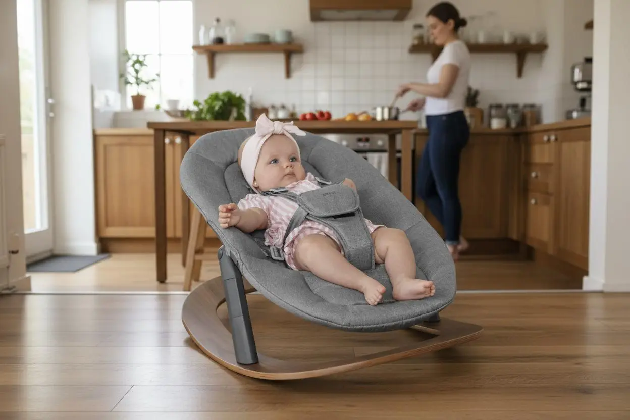 Štýlová hojdacia základňa premení novorodenecký set na pohodlné ležadlo pre bábätko. Jemné kolísanie upokojuje a podporuje prirodzený rytmus oddychu – ideálna od narodenia do cca 9 kg.